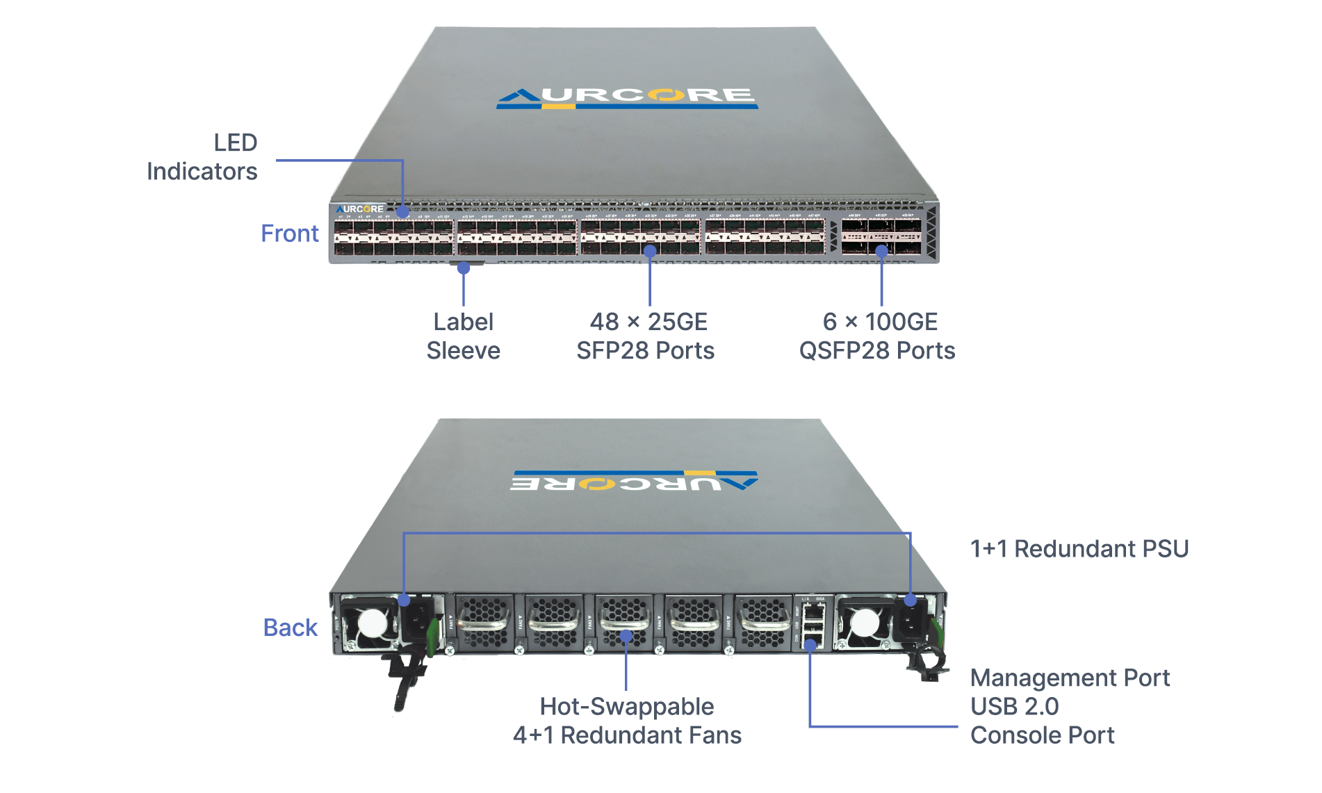 | Interface | 48 x 25GE SFP28 Slots | 6 x 100GE QSFP28 Slots |