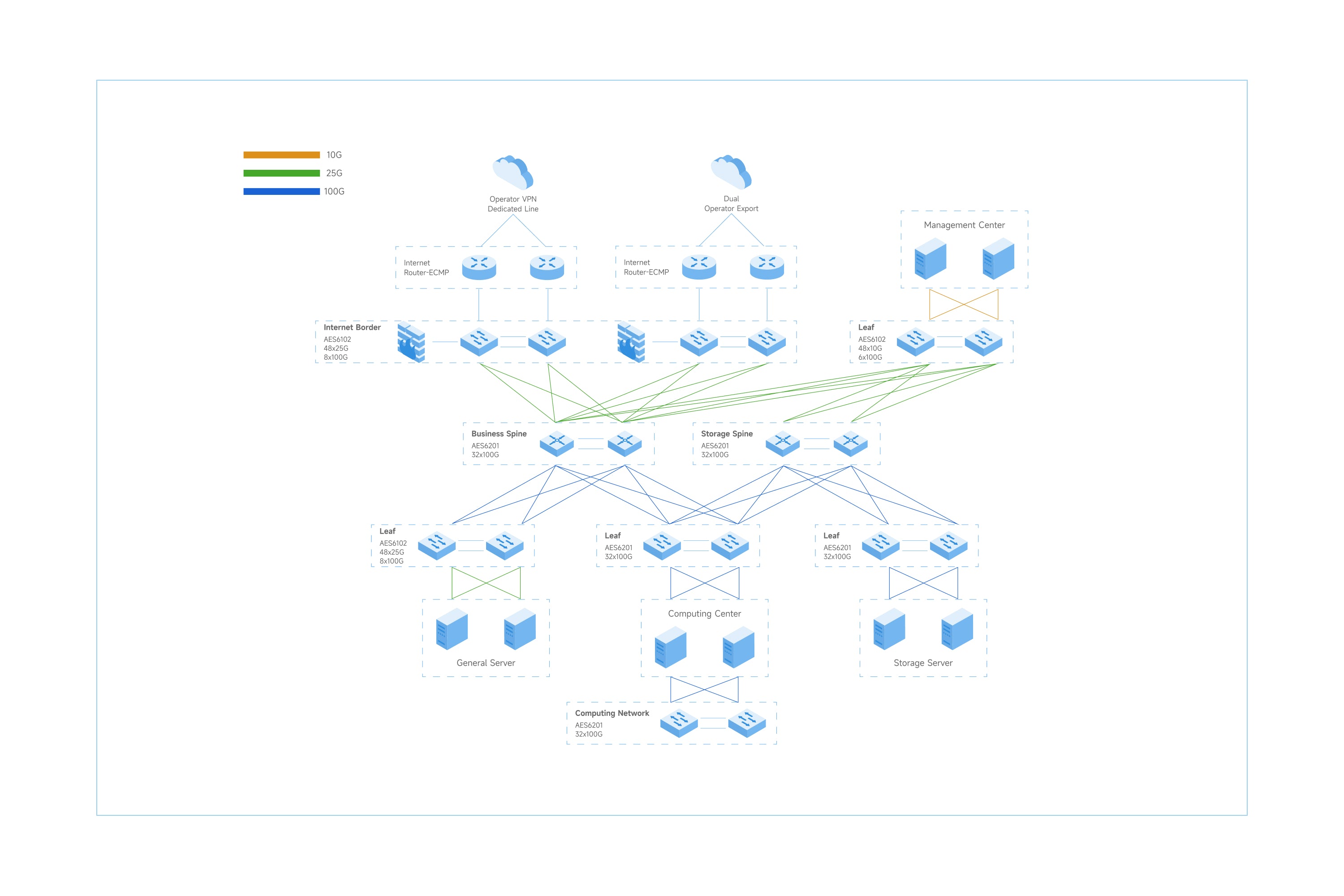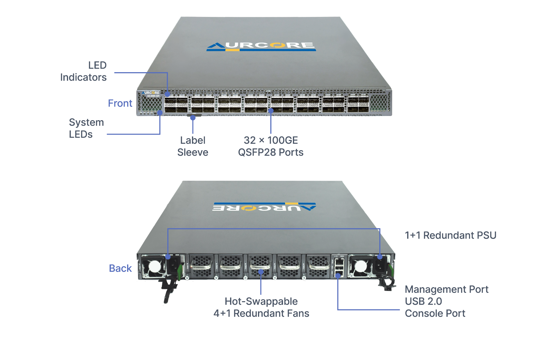 The AES6201 delivers high-throughput, lowlatency switching optimized for spine-layer deployments in modern data centers. Its space-efficient 1 RU form factor supports line-rate Layer 2 and Layer 3 switching across 32 x 100GE QSFP28 ports.